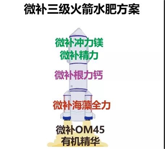 因此,采后保根就很重要了。沖施微補三級火箭水肥方案,微補OM45有機精華讓速效有機質(zhì)回流到樹(shù)體里面;微補根力鈣能促進(jìn)白根大量的長(cháng)出;微補精力能幫助迅速恢復樹(shù)勢;微補沖力鎂能增加鎂和微量元素減少黃葉落葉,通過(guò)采后沖施一次微補三級火箭水肥方案樹(shù)體的營(yíng)養就得到回流。